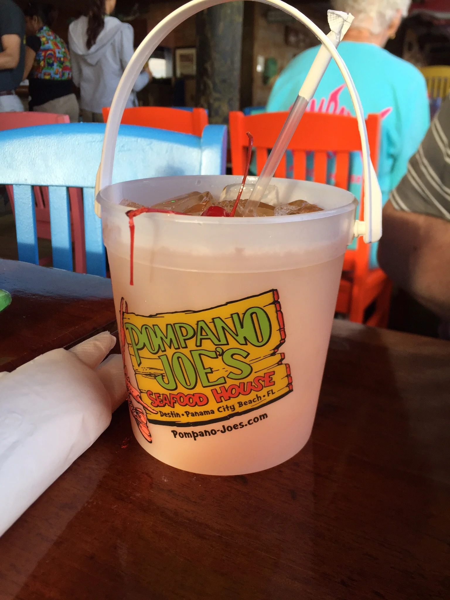 After a series of travel mishaps, we had success at the property management office. The ladies were all super nice and got us merrily on our way. We were very impressed with the condo. It had 3 bedrooms, 3 bathrooms, and plenty of space to hang out, including a fabulous balcony with a beach view. We unloaded our luggage and determined that we earned some drinks. The rest of the family wasn't due in for a few more hours, so we walked over to Pompano Joe's. The restaurant was right on the beach and we had a great view as we got seated. We ordered drinks- a bucket of booze for Mike and a local beer for me. For dinner, I ordered the BBQ jerk chicken sandwich and Mike got the blackened Mahi Mahi. My sandwich was yummy with the right amount of seasoning and the pineapple coleslaw was pretty good too. Normally, I do not eat my friends from the sea (Fish are friends, not food.), but I decided to taste Mike's fish and it was actually pretty good. After our meal, the family was getting closer, so we ordered some Yuenglings and waited for them. Yuenglings are a decent basic beer, but you can't get it west of Tennessee so it's a bit of a treat when we get to have it. Our family finally arrived and we ate dinner and started talking about all the fun things we planned to accomplish during our week together.