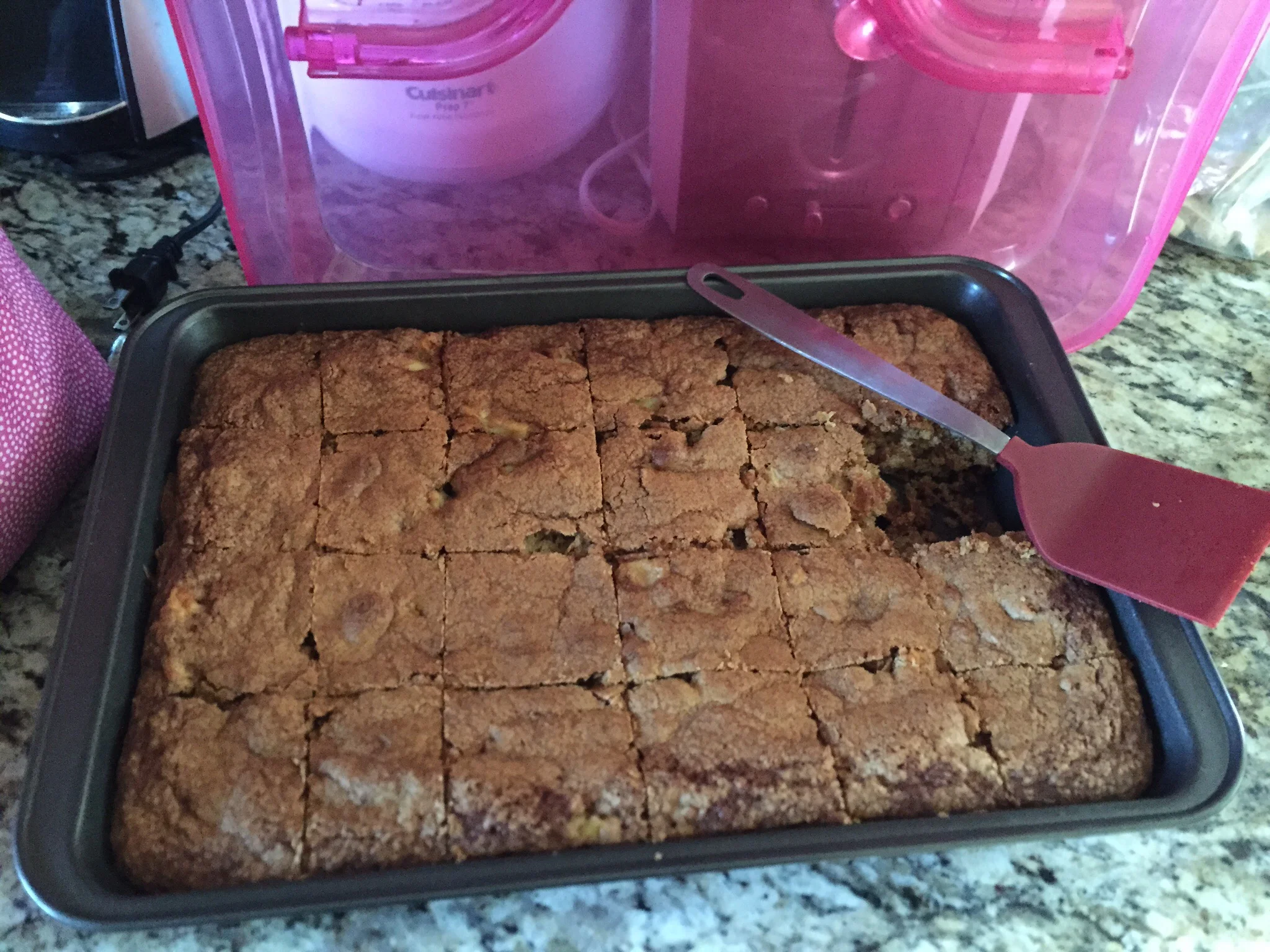 It was weekend baking for work time and I was feeling fall. I decided to try this recipe for Kentucky Apple Cake. I had a short amount of time to bake on Friday afternoon between my nail appointment and heading to work. I mixed and chopped and got it into the oven as quickly as I could. The batter smelled amazing so I had very high hopes for the recipe. It was supposed to cook for 50 minutes to an hour and I knew that would be cutting it close time wise. I opted to not make the glaze to make things slightly healthier. The cake was too hot to take to work that night so I let it cool and took it to work Saturday. It was so yummy! The best word to describe it would have to be moist. It was also full of apple and cinnamon flavor. The only thing to potentially make this cake a little better might be a scoop of ice cream. This cake definitely takes me back to memories of Apple picking on my birthday, so this is a good way to use up some of those apples you might be picking right now.